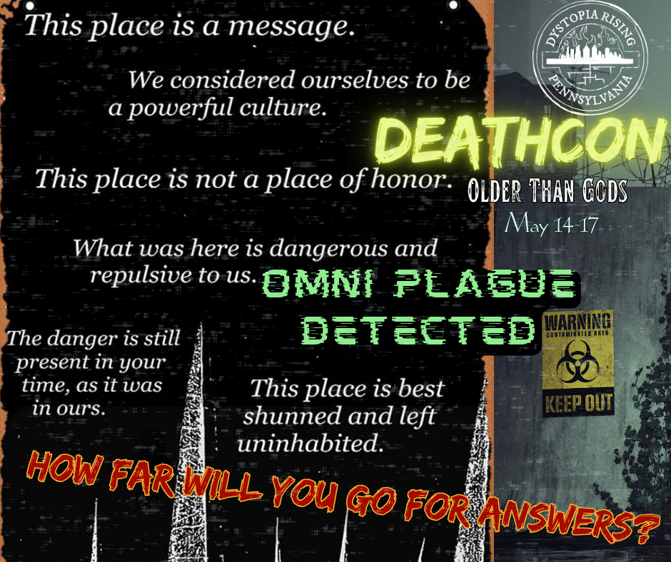 Because of the extreme distance and environmental volatility—think flash floods, rockslides, or brutal weather—any character who embarks on this journey will be unable to return to the main Deathcon site for the remainder of the weekend. The Details (No Spoilers!) Guides will collect the character’s sheet for processing directly after the Mod.